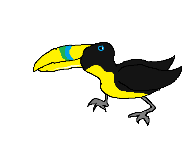 The Default Toucan is Black head and body with Yellow bill and breast.